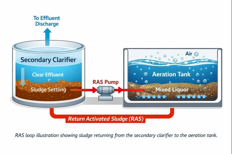 Braitheann córais sloda gníomhachtaithe ar mhiocrorgánaigh chun truailleáin a dhíghrádú. Gan RAS, cailltear sloda tríd an soiléiritheoir, laghdaítear bithmhais, agus titeann éifeachtúlacht cóireála le himeacht ama.